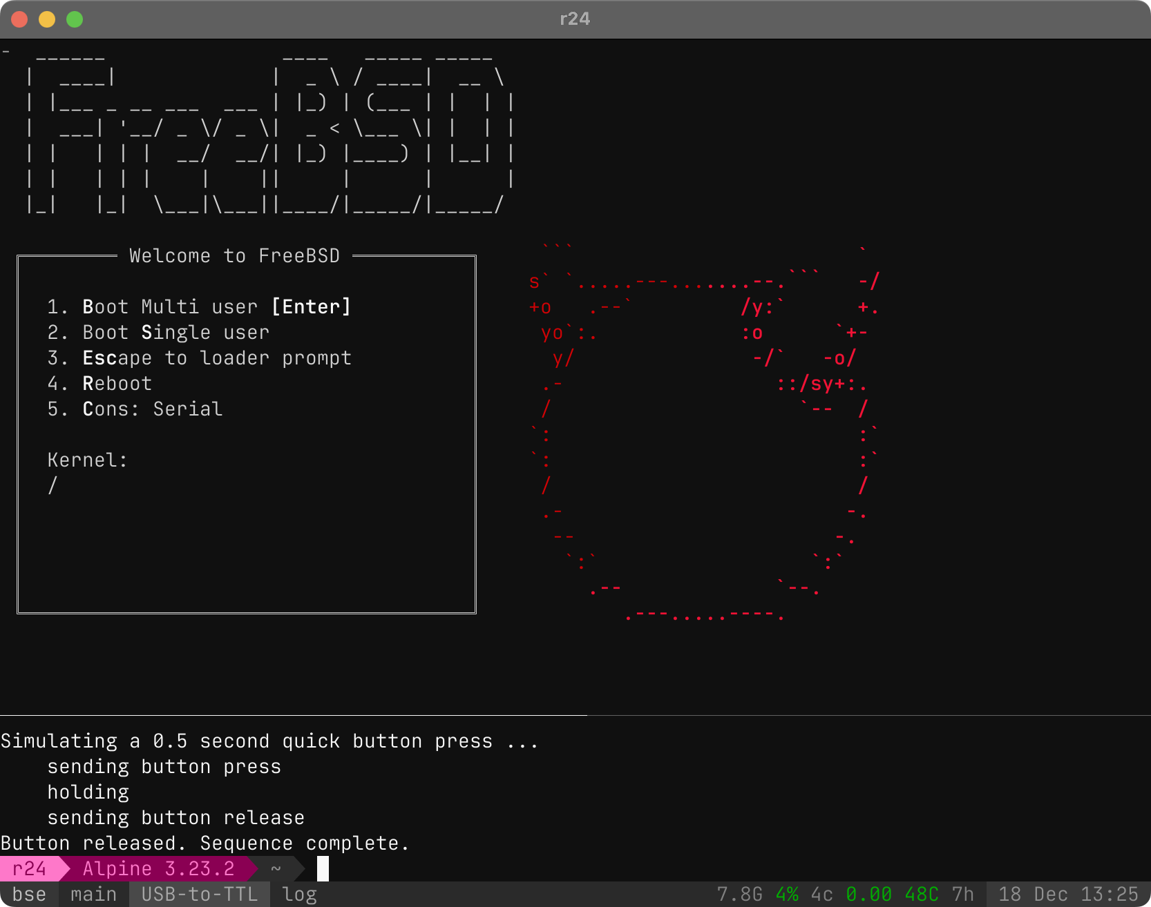 courtesy of our newly installed USB-to-TTL cable. I’m using picocom, but any serial