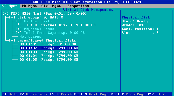 All 4 disks now show as unconfigured in the VD Mgmt tab.