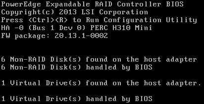 Now there are 6 3TB drives in Non-RAID configuration. As we boot, we now see 6 Non-RAID disks.